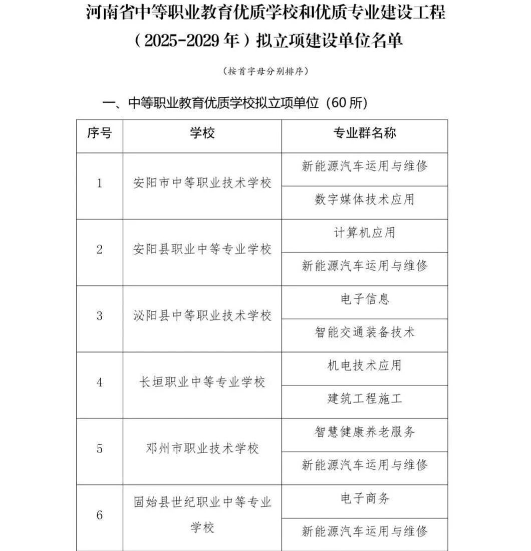 近日,河南省中等职业教育优质学校和优质专业建设工程(2025-2029年)拟立项建设名单公布。郑州交通技师学院成功获评省级优质学校立项建设单位,并获批重点建设“汽车维修”与“计算机广告制作”两大专业群,实现了“优质学校”与“优质专业”的双重突破。