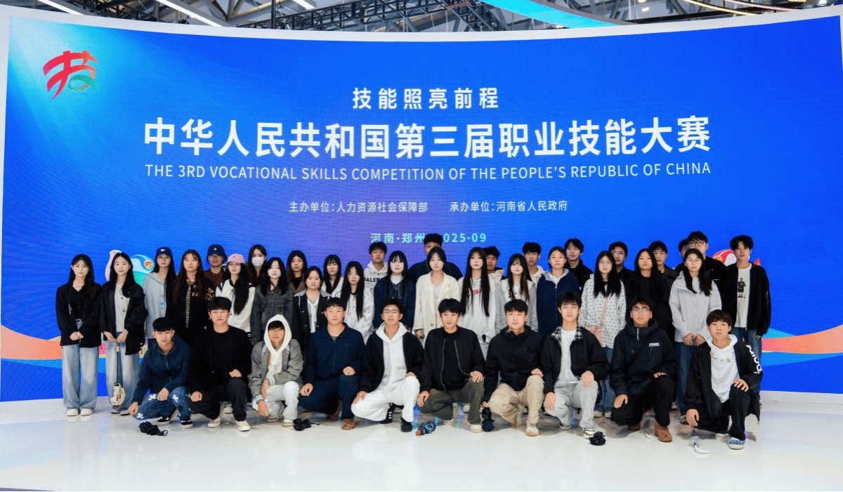 9月22日,郑州交通技师学院组织学生代表前往中原国际会展中心,现场观摩中华人民共和国第三届职业技能大赛。