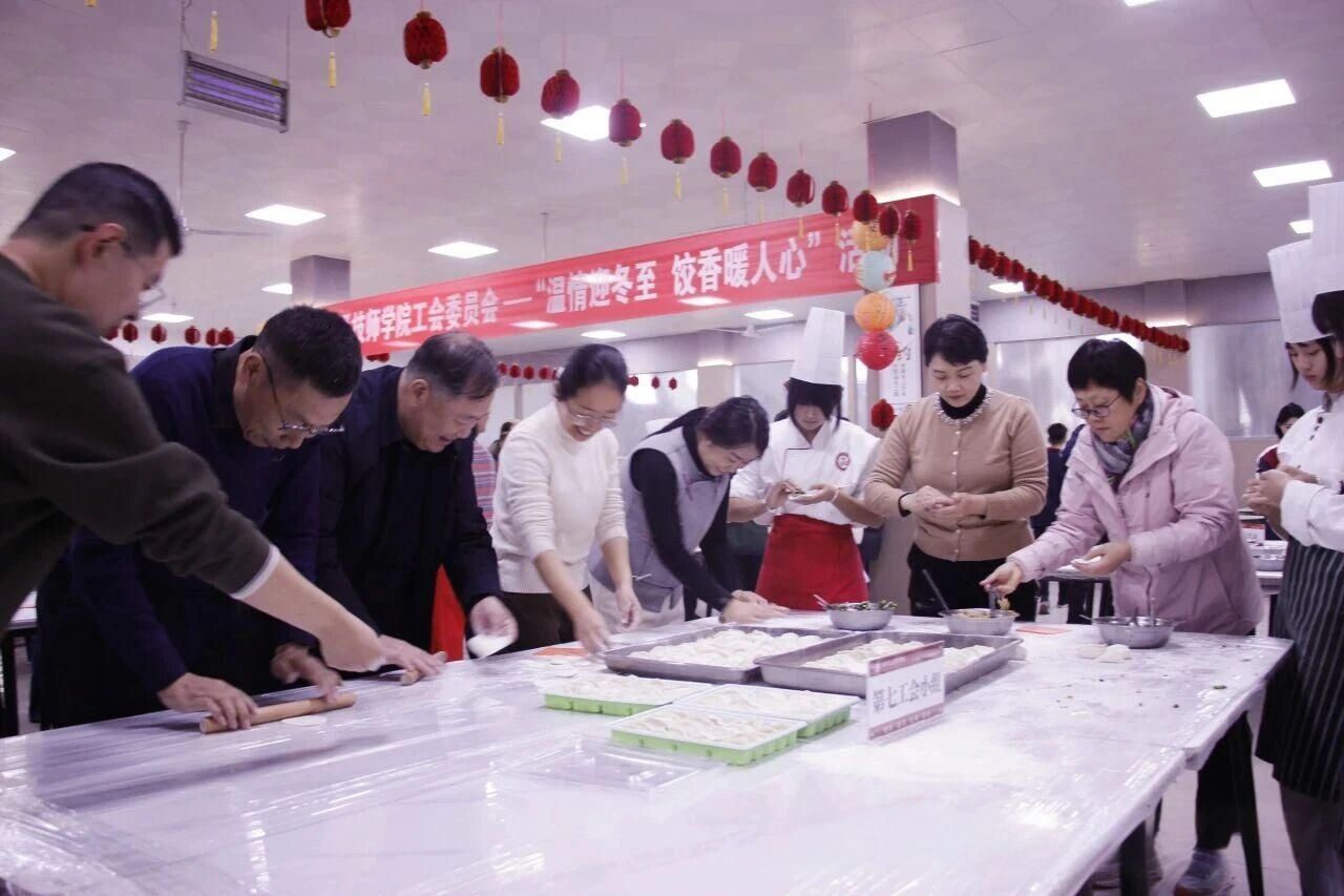 12月19日上午,郑州交通技师学院工会“温情迎冬至 饺香暖人心”包饺子活动在教职工餐厅温情启幕,院领导同教职工代表围坐一堂,以饺为媒,共赴这场舌尖上的团圆之约,让寒意渐浓的冬日校园,因团圆温馨的碰撞而暖意融融。