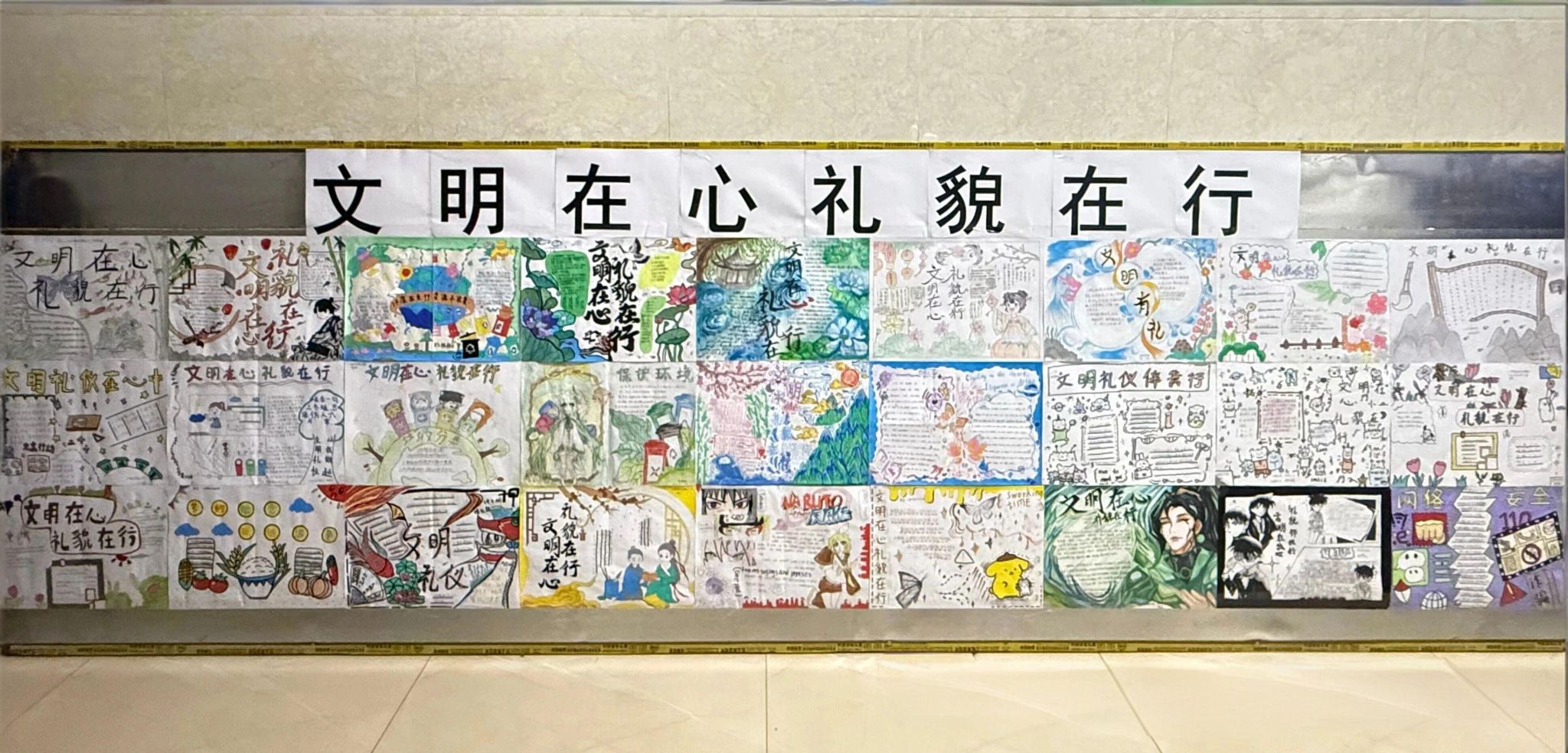 近日,由学院基础教学部政史教研组主办的“文明在心,礼貌在行”画报评比活动圆满落幕。此次活动紧扣学院文明实践月精神要求,面向25春季、秋季各班同学开展,围绕言谈举止、卫生环境等六大文明主题,鼓励同学们以创意画笔勾勒文明轮廓、诠释文明内涵。