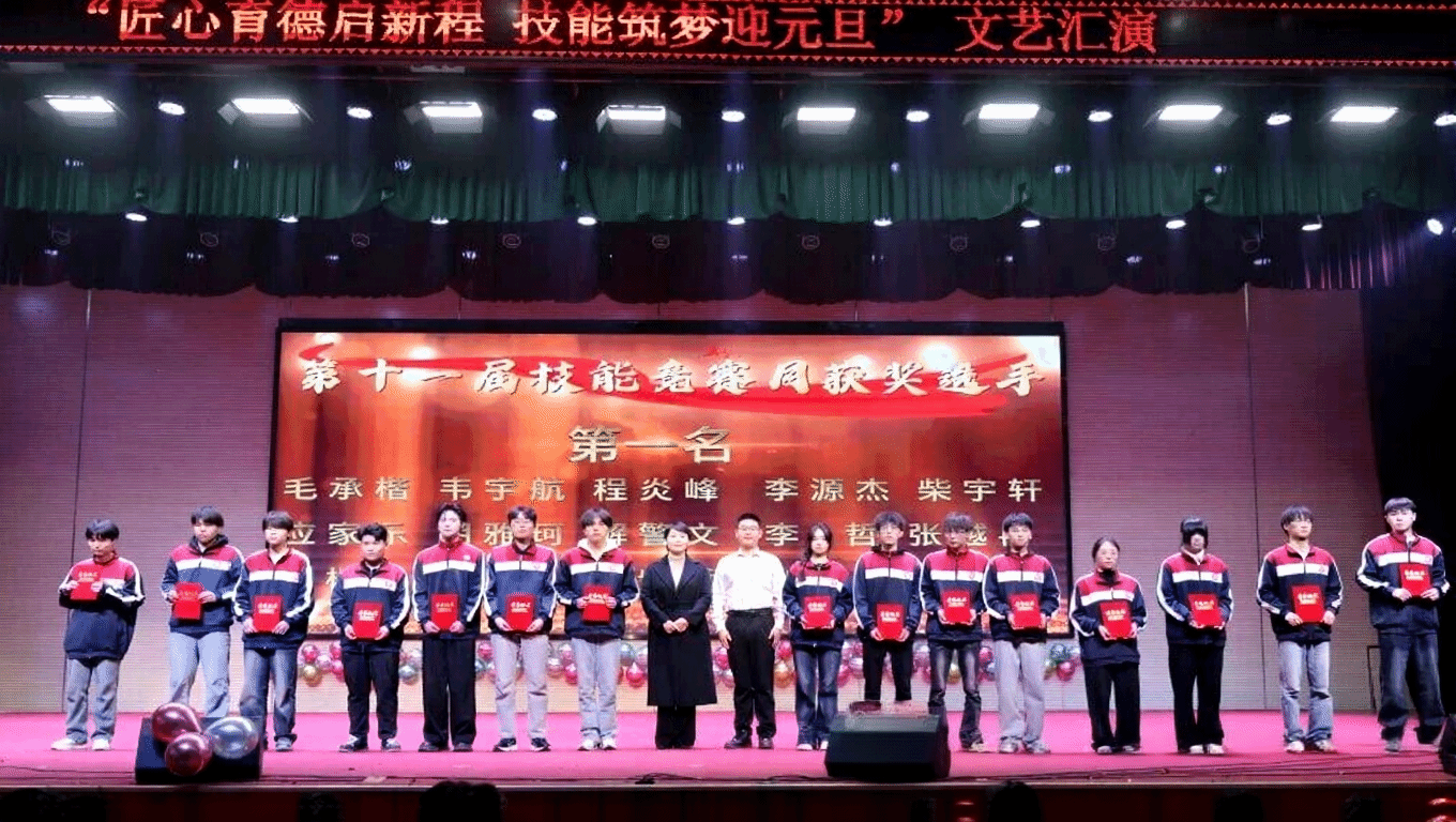 汇演中,两场特殊的颁奖环节格外引人注目。为贯彻“以赛促教、以赛促学”的育人理念,学院对第十一届技能竞赛月的获奖选手进行表彰。