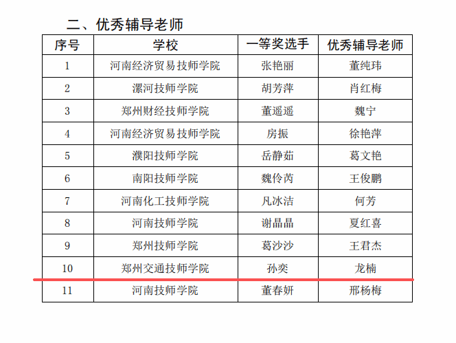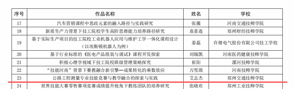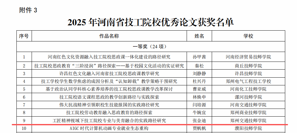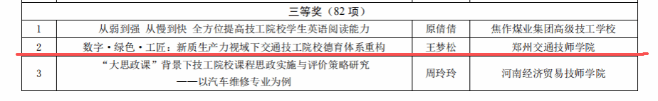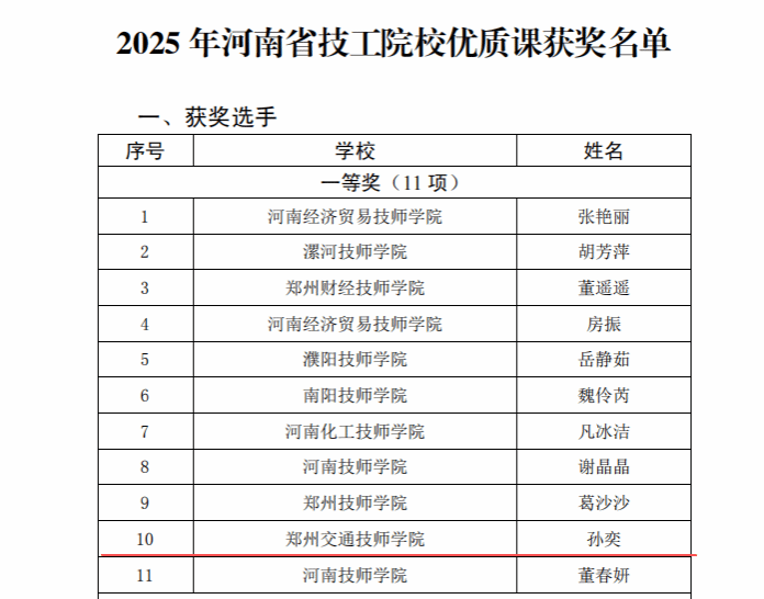 近日,2025年河南省技工院校教研评选活动结果揭晓。郑州交通技师学院教师团队在此次高水平竞技中表现卓越。本次评选共荣获奖项11项,其中一等奖3项、二等奖3项、三等奖3项;此外,一名教师获评“优秀辅导教师”,学院更是荣膺“优秀组织奖”,实现了奖项数量与质量的双重突破。全面展现了学院在深化教学改革、推动教研创新与加强师资队伍建设方面的扎实成效与蓬勃活力。
