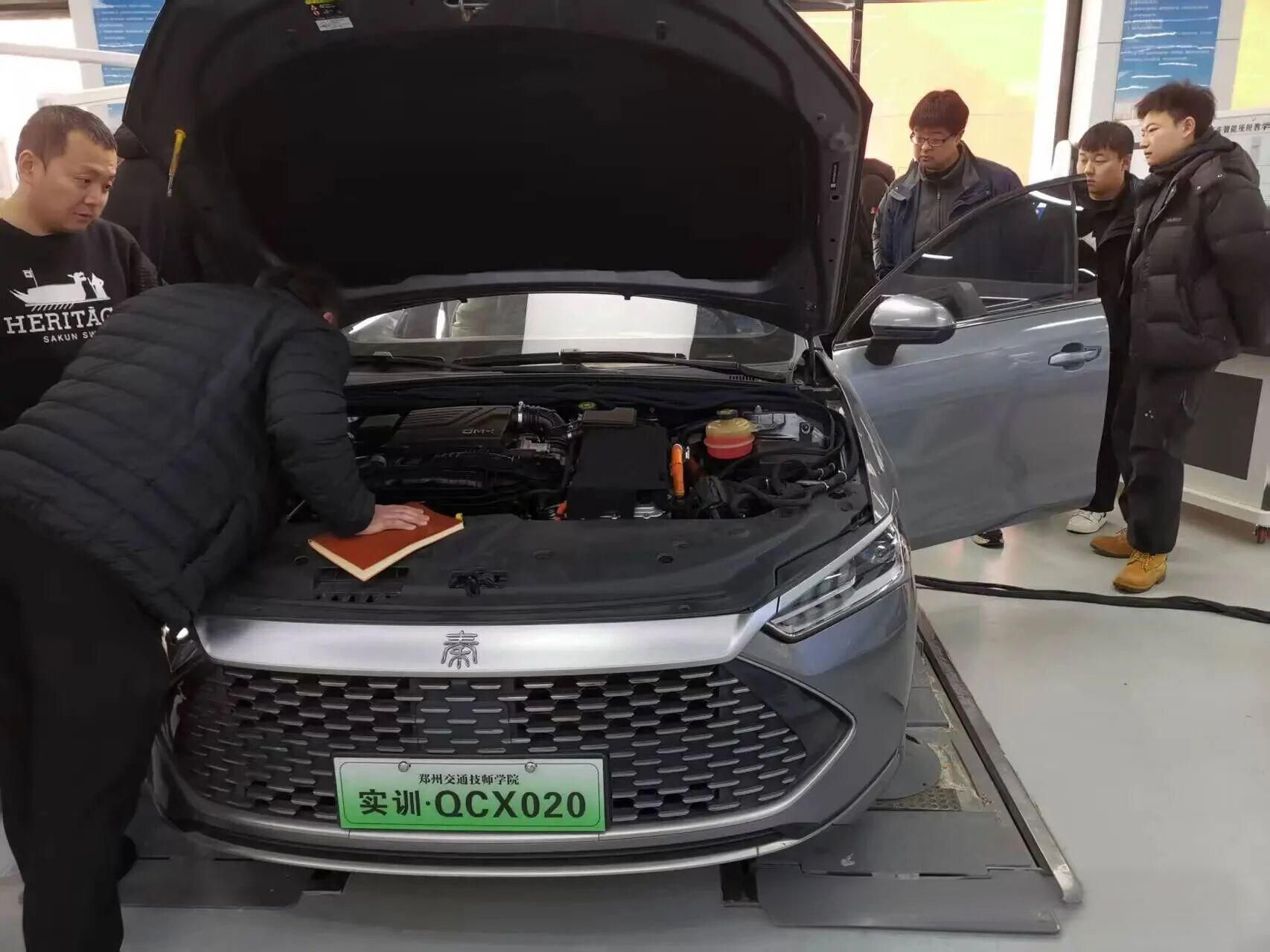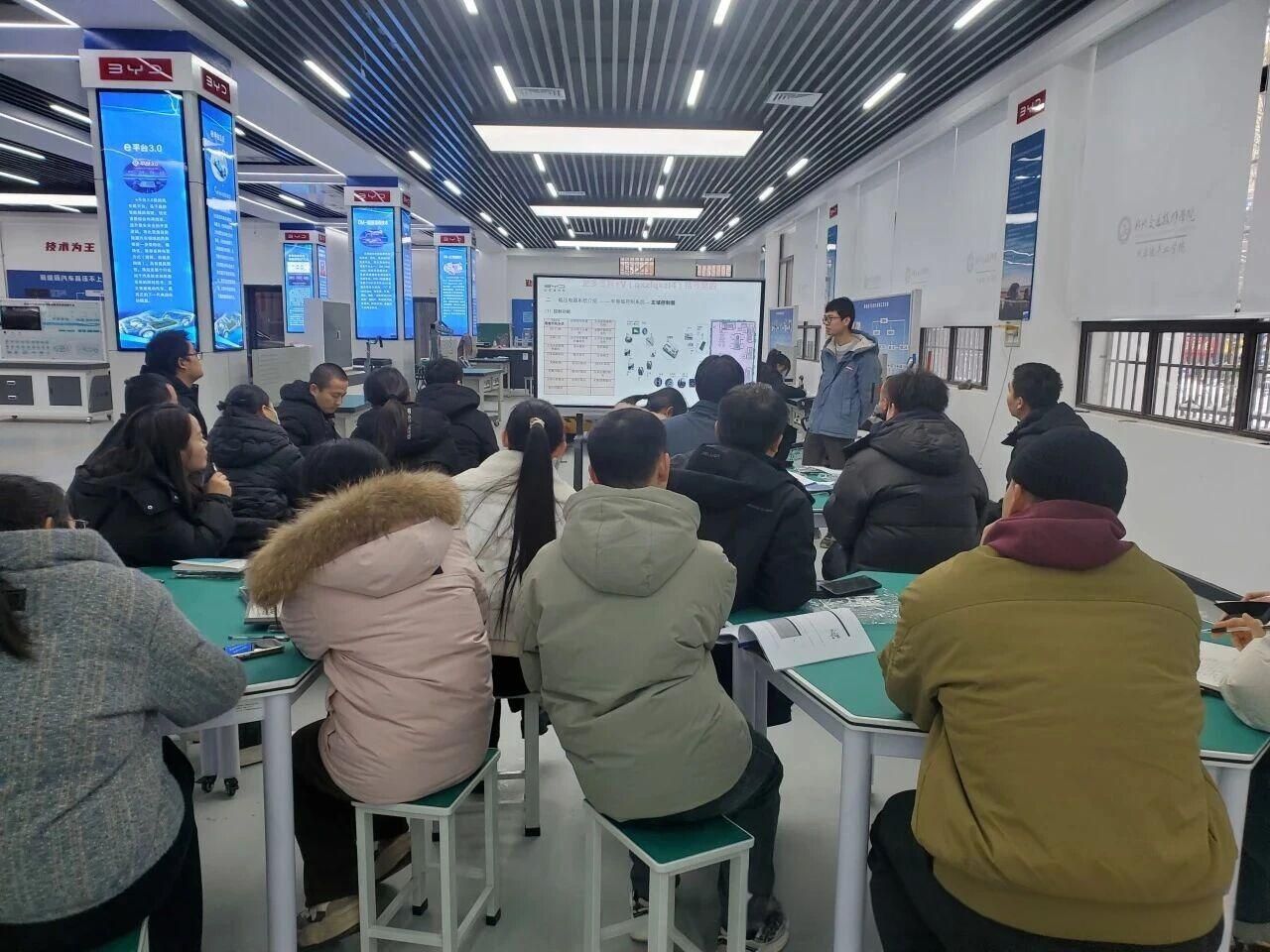 为深化产教融合,提升实践教学质量,助力下学期教学工作高效开展,近日,我院汽车技术系比亚迪产业学院在16号楼1楼实训室,组织开展新进混动汽车教学实训设备使用专项培训。本次培训特别邀请比亚迪供货商技术骨干担任讲师,相关专业教师全员参训。