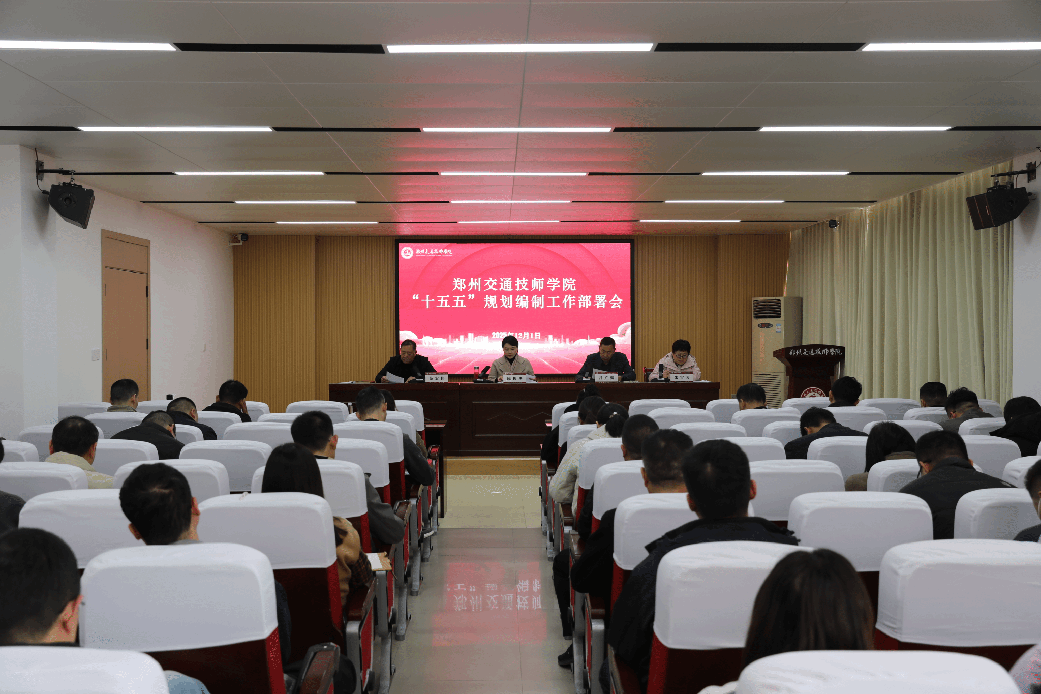 12月1日,学院在一号楼报告厅召开2025年重点工作总结、2026年工作谋划暨“十五五”规划编制工作部署会。学院领导班子成员、全体中层干部参加会议,党委书记、院长陈振华作总结讲话并部署工作。