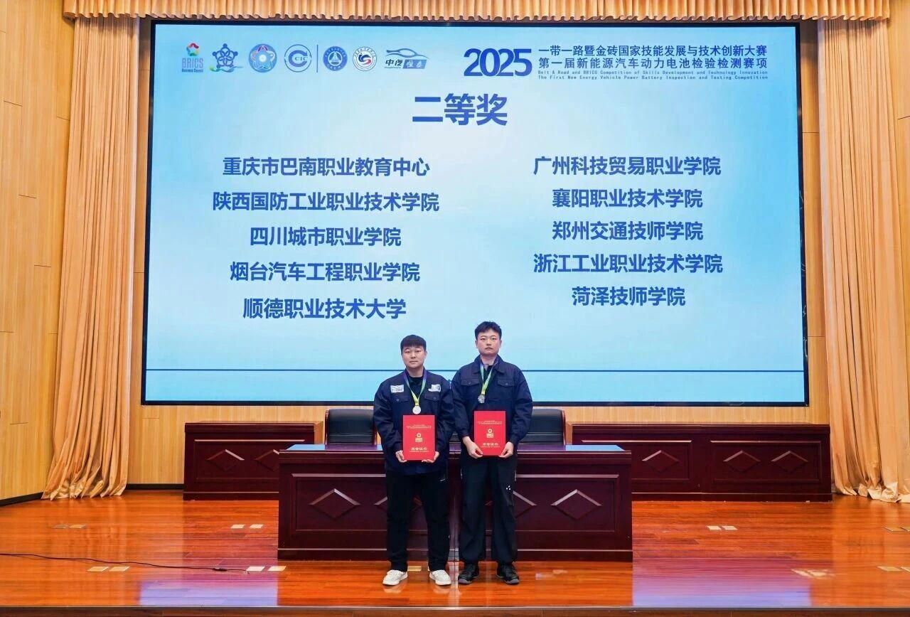 近日,我院教师武洋、赵亚明在2025一带一路暨金砖国家技能发展与技术创新大赛首届新能源汽车动力电池检验检测赛项全国总决赛中,取得全国二等奖的好成绩。